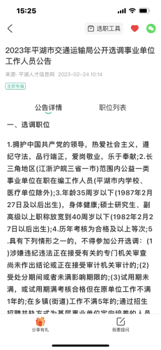 来自公告:2023年平湖市交通运输局公开选调事业单位工作人员公告