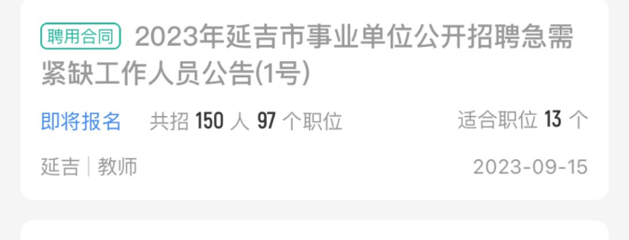 来自公告:2023年延吉市事业单位公开招聘急需紧缺工作人员公告(1号)